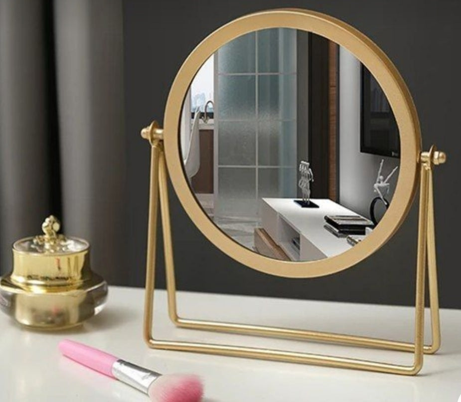 ✅ Product Highlights: 💛 Premium gold metal frame 🔄 360° rotatable mirror 🔍 High-quality, clear mirror surface 🧍♂️ Sturdy, anti-slip base 🖼️ Modern minimalist style 🎁 Perfect for gifting or personal use 📏 Specifications: Material: Metal frame + glass mirror Color: Gold Dimensions: [Insert actual size here, if available] Weight: Lightweight & portable